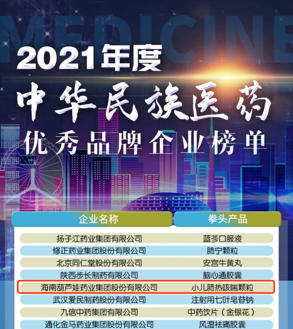 12月29日,全国工商联医药业商会发布了“2021年度中华民族医药优秀品牌企业榜单”,尊龙药业集团凭借黄金单品小儿肺热咳喘颗粒(4克)实力登榜。